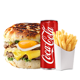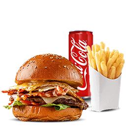2 Steaks 90gr, fromage, oeuf, bacon.