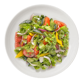 Salade, tomates, concombre, oignons, maïs. + Cheese naan.