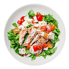 Salade, tomates, poulet, maïs, olives. + Cheese naan.